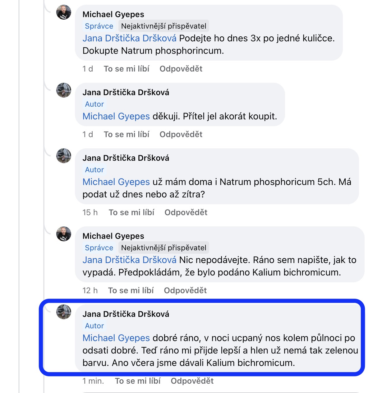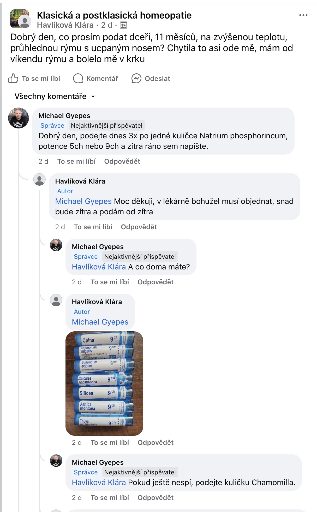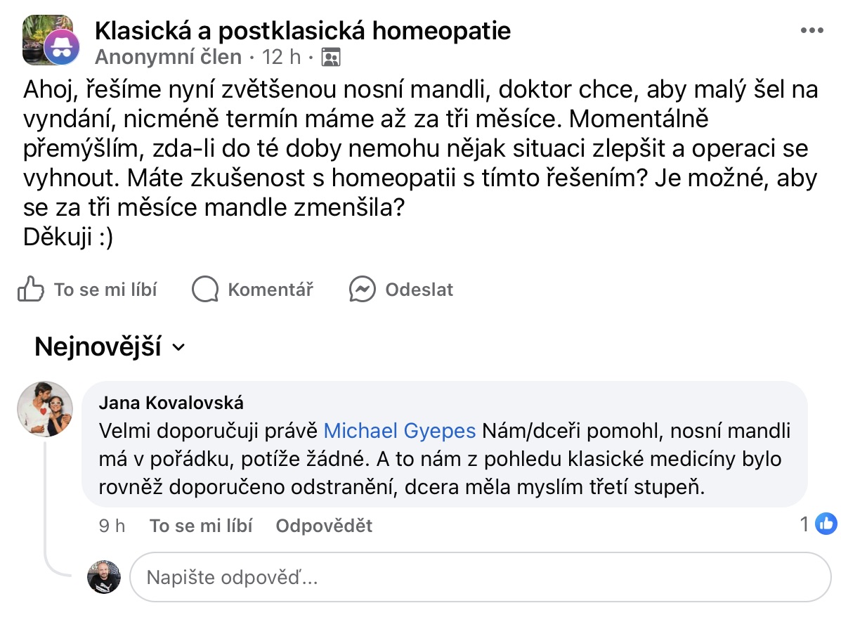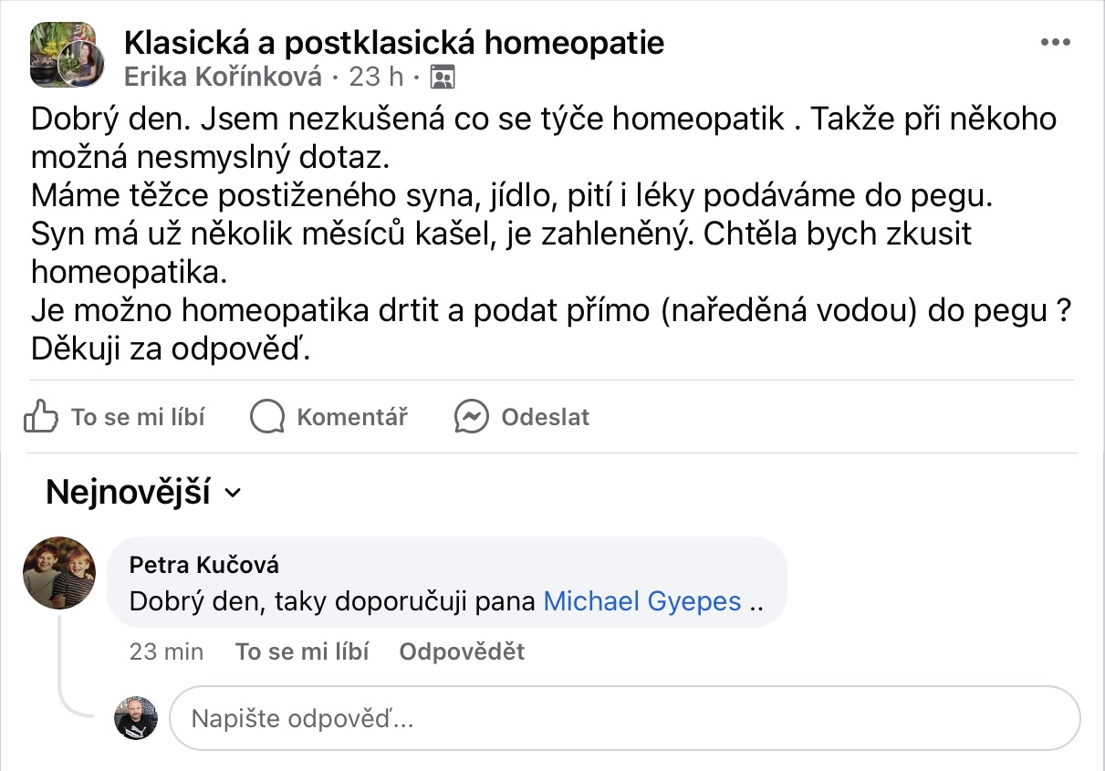 Recenze na Facebooku ve skupině Klasická a postklasická homeopatie.
