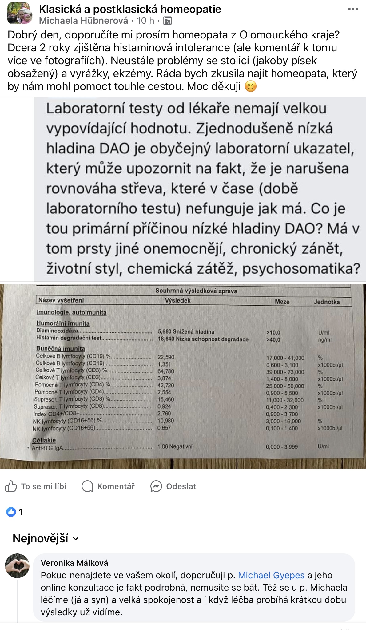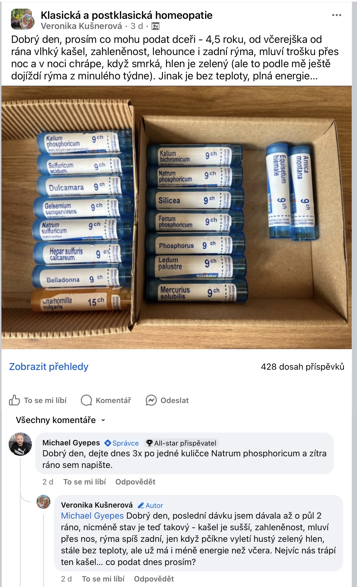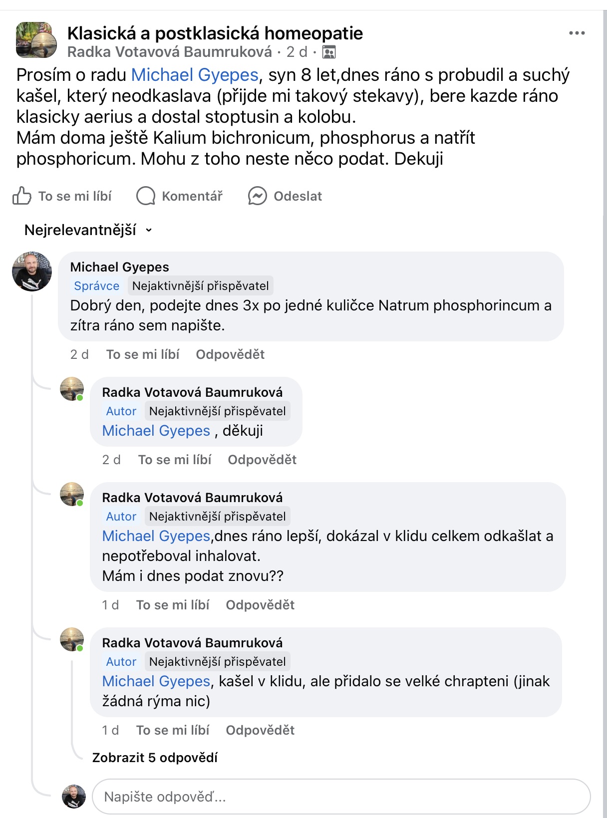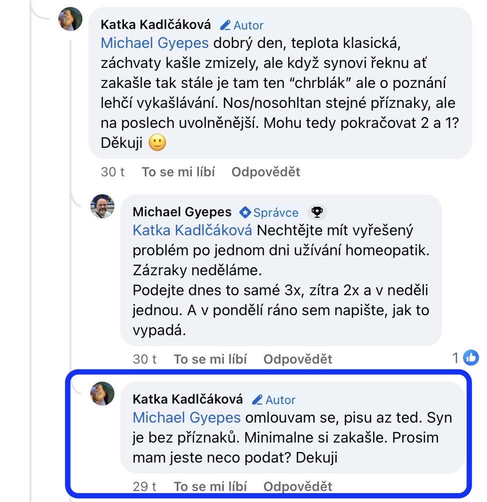 Recenze na Facebooku ve skupině Klasická a postklasická homeopatie.